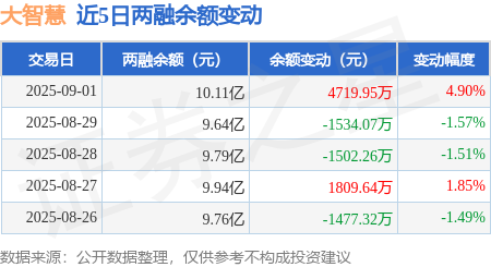 本站消息,9月1日,大智慧(601519)融资买入1.58亿元,融资偿还1.1亿元,融资净买入4747.35万元,融资余额10.09亿元,近20个交易日中有12个交易日出现融资净买入。